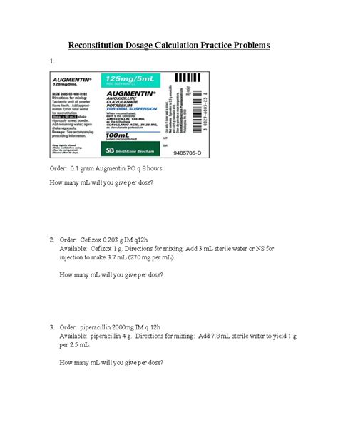 Read Online reconstitution nursing dosage calculation practice problems Doc